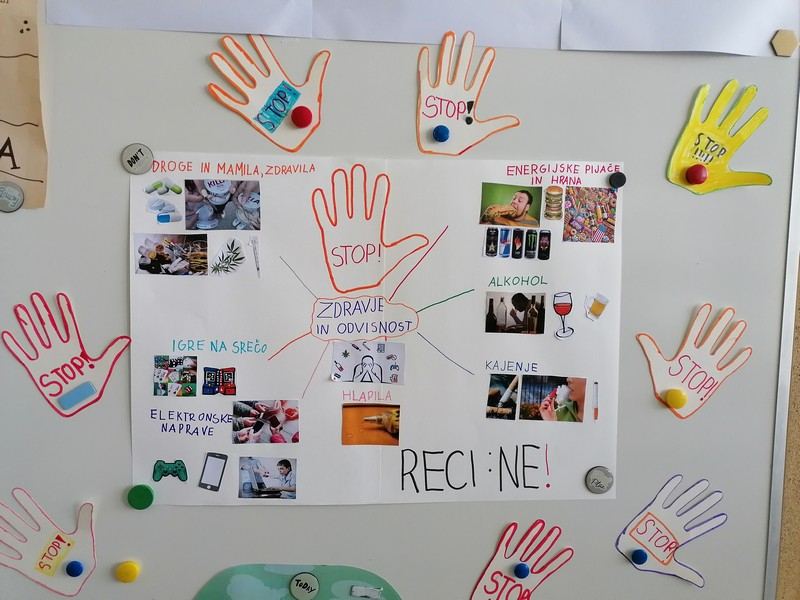 Dan smo začeli s predavanjem medicinske sestre Melite Oroš iz ZD Lendava. Razložila nam je, kaj pomeni biti odvisen, kaj vodi v odvisnost in kako ne postati odvisen od katere koli stvari ali snovi, ki nas lahko zasvoji. Poudarila je, da je odvisnost lažje preprečiti kot zdraviti in da je zato potrebno vedno in povsod misliti s svojo glavo in predvsem cigaretam, alkoholu in drogam odločno reči NE, prav tako pa je potrebno omejiti vnos nezdrave hrane ter se več gibati na svežem zraku, ne sedeti pred ekrani.