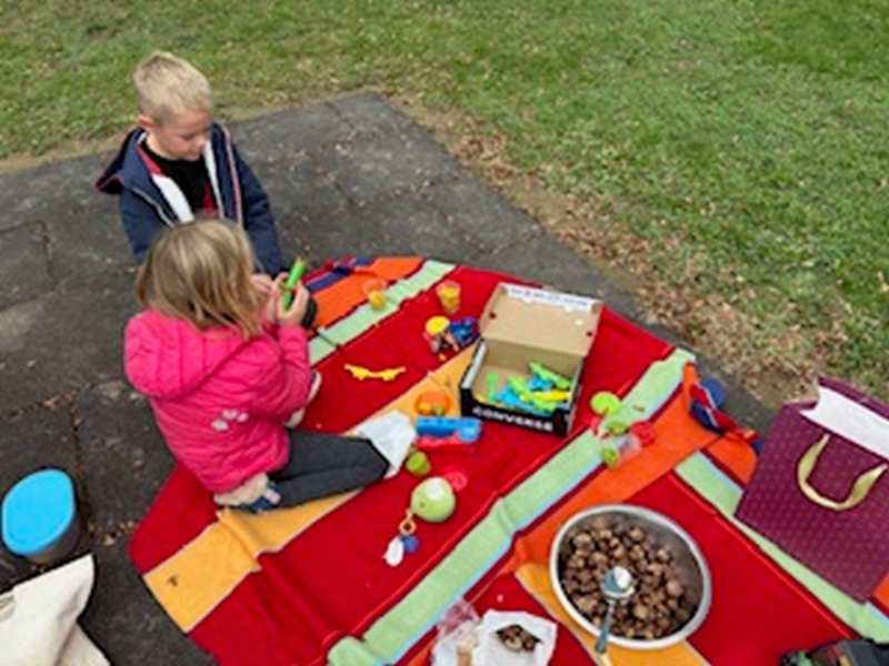 Na pisanih odejah smo se poigrali z igračami od doma in uživali v jesenskem vzdušju.