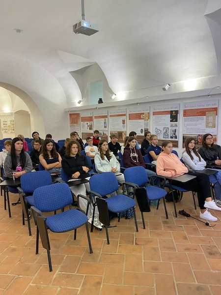 Nazadnje smo se zapeljali preko meje na Madžarsko. Na šoli v Gornjem Seniku nas je pričakala ga. Valentina Novak, ki nam je razkazala šolo, predstavila značilnosti dvojezičnega šolanja ter spregovorila o pomembnosti slovenske manjšine v Porabju.
