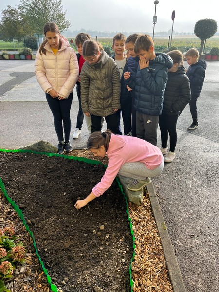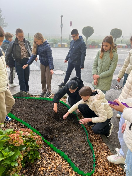 V tednu otroka smo z učenci v okviru projekta posadili rumene krokuse pred našo šolo – v spomin na otroke, ki so umrli v holokavstu ter na vsa nedolžna življenja, izgubljena v času nacizma.