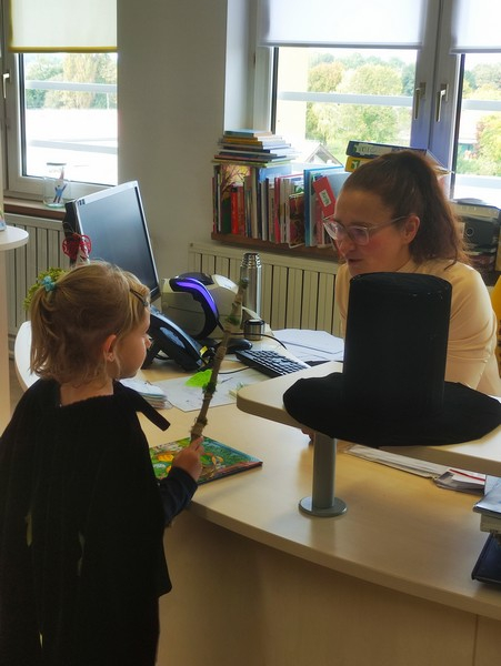 Učenci 1. a-razreda so pričeli s čaranjem – ABRAKADABRA – branje. Z velikim veseljem si oblečejo svoje čarovniško pregrinjalo, si nadenejo čarovniški klobuk, vzamejo čarovniško palico in že hitijo v knjižnico. Tam jih še z večjim veseljem pričaka knjižničarka, ki vneto posluša pripovedovanje čarovniško obarvanih pravljic in pesmic. Čaranje jim ne dela težav, ena učenka je že opravila tudi čarovniški izpit. Bravo male čarovnice in čarovniki! Hvala gospe Aniti Šinkec Gjörek za čarovniško idejo in izdelavo čarovniških oblačil!