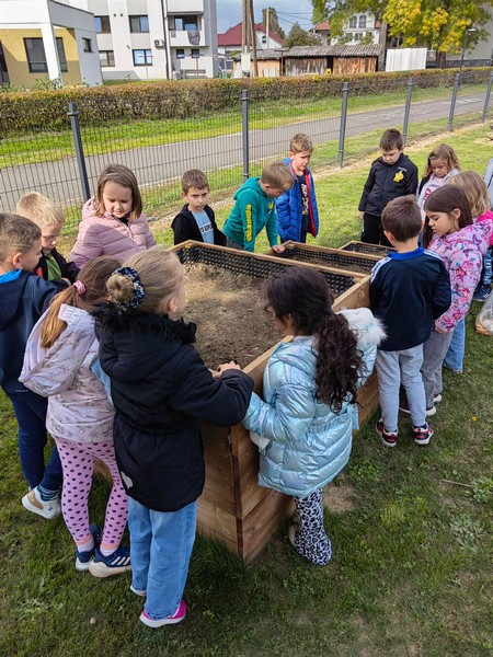 V mesecu septembru je naša šola postala lastnica šolskega vrta. Z učenci prvega razreda smo čas po pouku (RAP) izkoristili in šolski vrt malce uredili in ga zasadili s prvimi posevki. Vrt smo poimenovali, prav tako bomo sproti poimenovali tudi rastline in skrbeli za zalivanje in urejenost vrta. Vse skupaj vabimo, da si vrt spoštljivo ogledate, a ne pozabite, gledamo z očmi. V kolikor pa si želite karkoli iz vrta, ali pri vrtu pomagati pa se o tem prej posvetujte z odgovornimi osebami. Z učenci prvega razreda bomo pridelke z veseljem delili, ne bomo pa se branili pohvale in kakšne pomoči. Vabljeni tudi starši ali ostali učitelji in zunanji sodelavci, da se nam pridružite in nas o čem podučite, veseli bomo vsakršne pomoči, podarjenega časa ali kakšnega pripomočka, mogoče sadike, tako kot nam je prve rastline podaril gospod Mirjan Sraka.