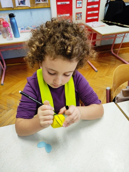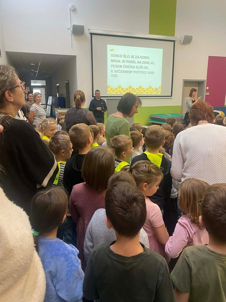 - V vrtčevski avli smo, s celotno šolo, zapeli Slakovo pesem Čebelar.