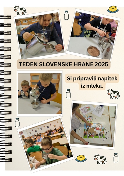 V sklopu aktivnosti razširjenega programa smo z učenci preko pogovorov spoznavali izvor vseh petih sestavin tradicionalnega slovenskega zajtrka. Nekaj smo si jih pripravili tudi sami, poskrbeli pa smo tudi za izdelavo namizne dekoracije, ki je krasila omizja v jedilnici.
