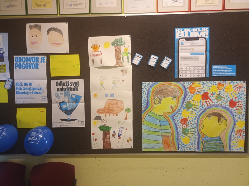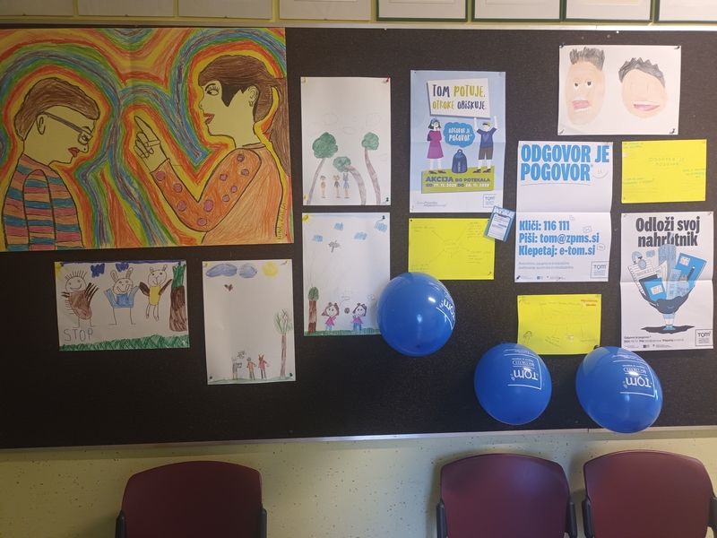 Na šoli smo v času od 17. 11. 2025 do 28. 11. 2025 tudi letos gostili Tom telefon v okviru vseslovenske akcije »Tom potuje, otroke obiskuje«. Z dejavnostmi v okviru akcije smo učencem predstavili pomen pogovora in jih seznanili s TOM telefonom, kot enim izmed virov pomoči, ko se znajdejo v stiski ali potrebujejo pogovor. Izvedli smo dejavnosti na temo »Odgovor je pogovor« in opozorili na zavedanje, da nam pogovor lahko pomaga ko smo žalostni, jezni, razočarani… S pogovorom problem pogosto postane manjši, bolj obvladljiv, se lažje umirimo in dobimo občutek, da v stiski nismo sami.