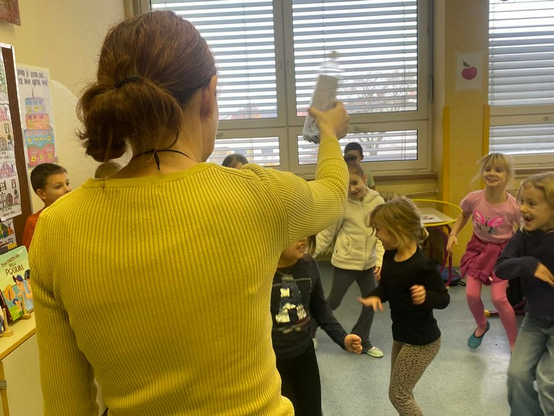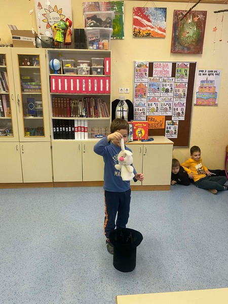 Pri ustvarjalnem gibu smo v mesecu novembru in decembru ustvarjali gibe s pomočjo vsakdanjih predmetov in pripravljali čarovniško predstavo.