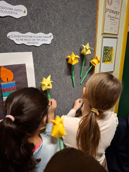 Učenci 3. razredov so izdelovali rumene krokuse, ki simbolizirajo spomin na otroške žrtve holokavsta in upanje v boljši svet. Učenci predmetne stopnje so pripravili plakate na temo holokavsta, strpnosti in spoštovanja ter sodelovali pri oblikovanju razstave. Učenci 1. razredov pa so izdelali svečo in jo simbolno prižgali v počastitev žrtvam holokavsta.