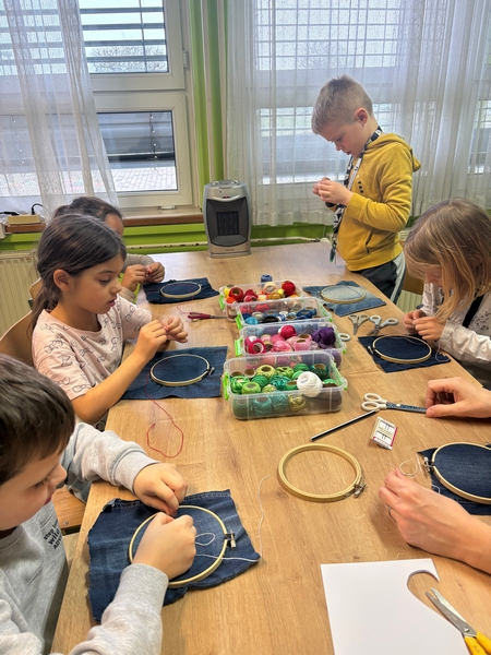 V okviru Rap Dolg(i) čas smo imeli ustvarjalno delavnico vezenja z učiteljico Tadejo Vogrinčič. Učenci so se spoznali z osnovami vezenja, preizkusili svojo natančnost in ustvarjalnost ter ob tem prijetno preživeli čas. Ustvarjanje je potekalo v sproščenem in spodbudnem vzdušju. Učiteljici Tadeji Vogrinčič se iskreno zahvaljujemo za njen čas, znanje in trud.