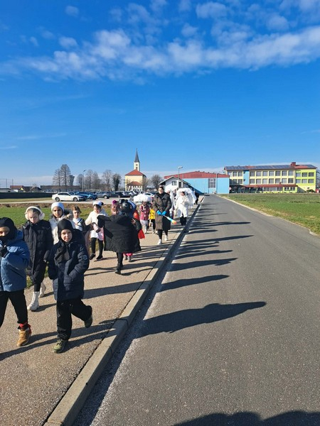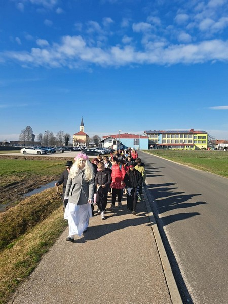 Po malici smo se odpravili na pustno povorko. Ob spremstvu učiteljev smo se sprehodili skozi vasi Trnje, Žižki in Črenšovci. Učenci so ponosno predstavili svoje kostume ter pričarali pravo pustno vzdušje.