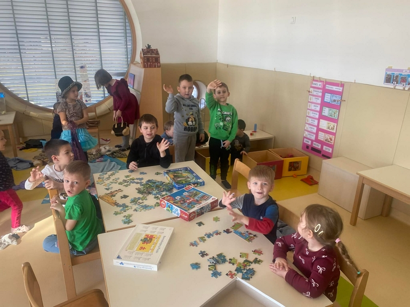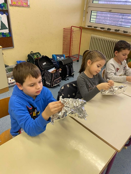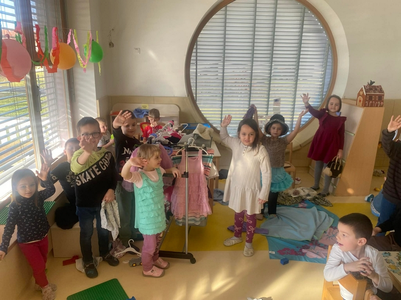 Februar je v 1.b razredu minil v spoznavanju tradicije in igrivem spoznavanju in učenju novih črk in besed. Ustvarjali smo pustne maske, kiparili iz gline, ustvarjali z alufolijo, slikali s glasbili… Družili smo se z otroci iz vrtca (vijolična skupina). Odganjali smo zimo na zimskem pustnem pohodu in plesali na pustnem plesu. Pred zimskimi počitnicami smo se pa še poskusili v LEGO robotiki.