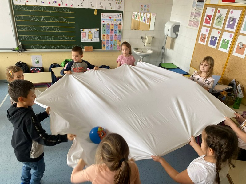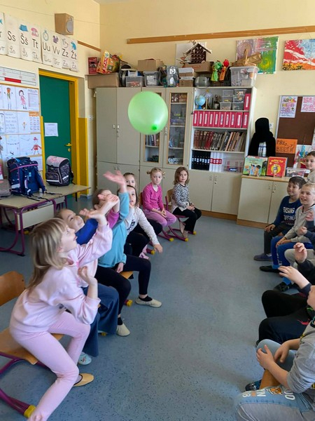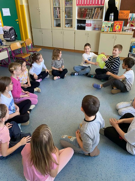 - igramo sedečo odbojko z baloni,