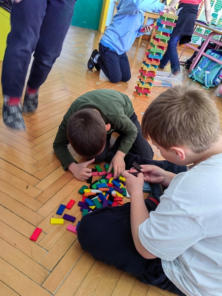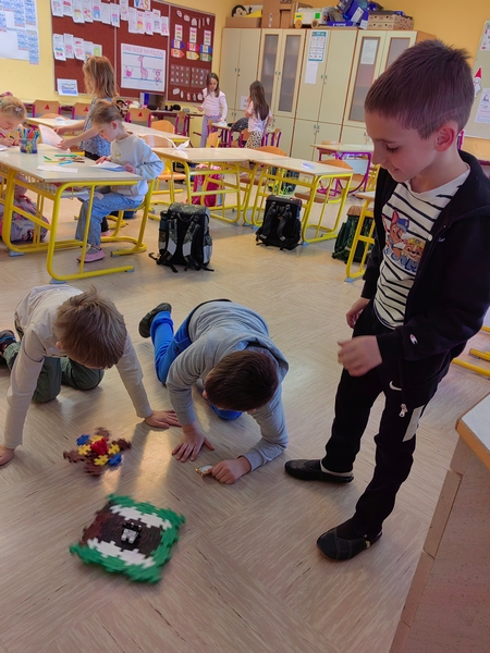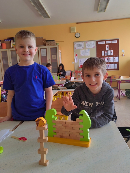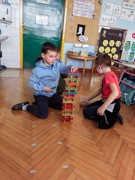 Veliko časa smo namenili igri – sestavljali smo kocke, ustvarjali vrtavke in različne figure ter razvijali domišljijo in spretnosti. Ob materinskem dnevu smo z veseljem izdelali poklone za mamice, čeprav je to od otrok zahtevalo kar nekaj truda, vztrajnosti in usklajevanja.